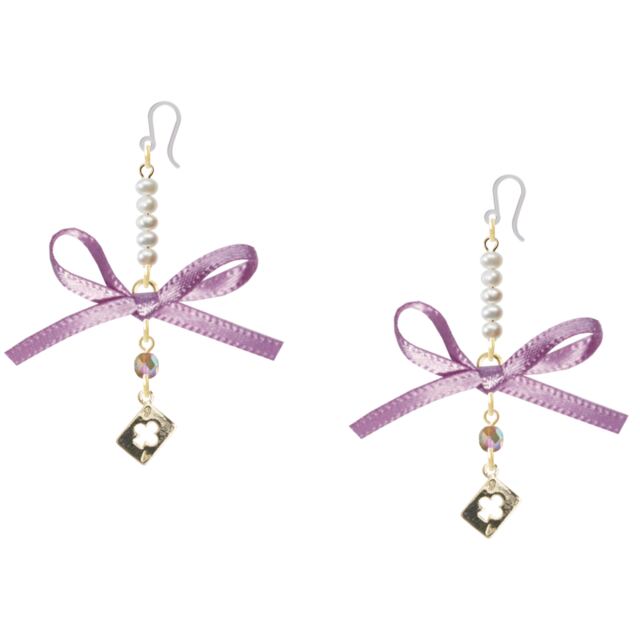 iris soleil No.21 サテンリボン&トランプ パールピアス アイリスソレイユ エレガント OL 通勤 通学 お出かけ お散歩