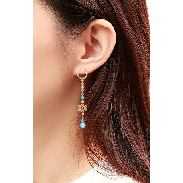 iris soleil No.23 ゴールド&ブルー スノー ドロップ フープイヤリング アイリスソレイユ エレガント OL 通勤 通学 お出かけ お散歩 | iris soleil(アイリスソレイユ)20代から30代の女性のをメインにお洒落なアイテムをお届けいたします