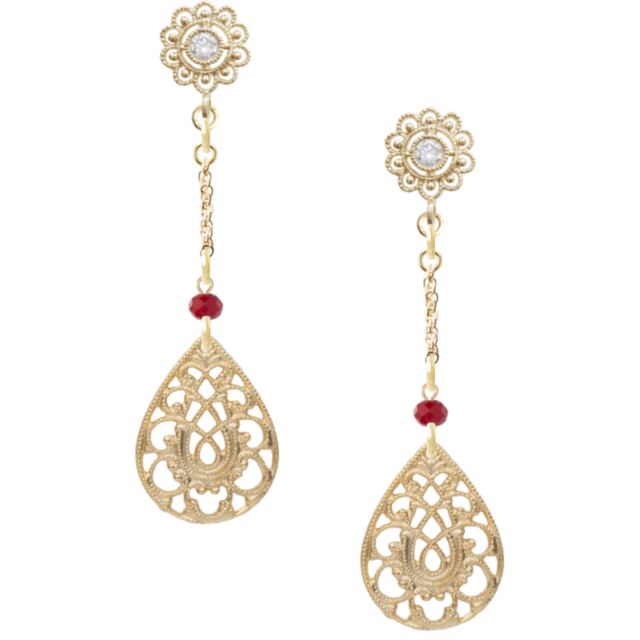 レッドガラスビーズ&ドロップ型スカシ スカシフラワーピアス
