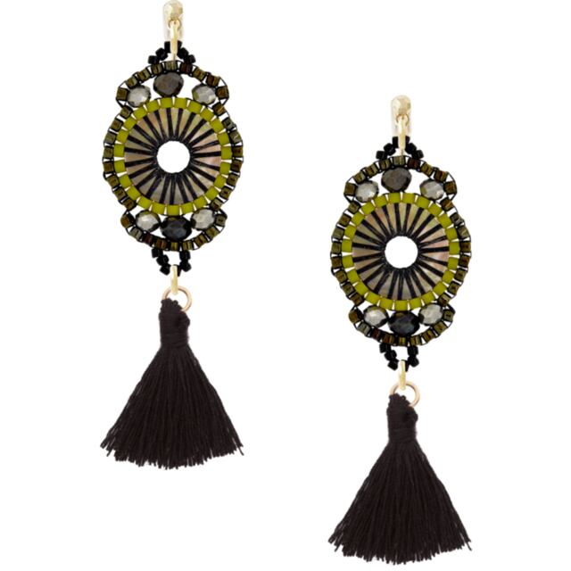 オリエンタルビーズ&ブラックタッセル イヤリング