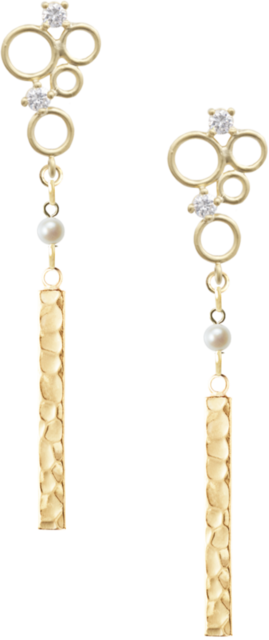 水面デザインメタルバー&淡水パール サークルラインストーンピアス